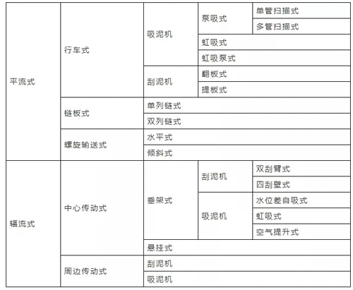排泥设备的形式随工艺的条件与池型结构的不同而有所不同,目前常用的排泥设备通常为平流是沉淀池排泥机和辐流式沉淀池排泥机两大类。