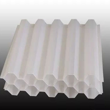 六角蜂窝填料材质有聚丙烯(PP)聚氯乙烯(PVC)和玻璃钢(FRP)三种。组装形式的斜管和直管两种形式。是近十年来在给排水工程中采用最广泛而且成为一项水处理装置。它适用范围广,处理效果高,占地面积小等优点。